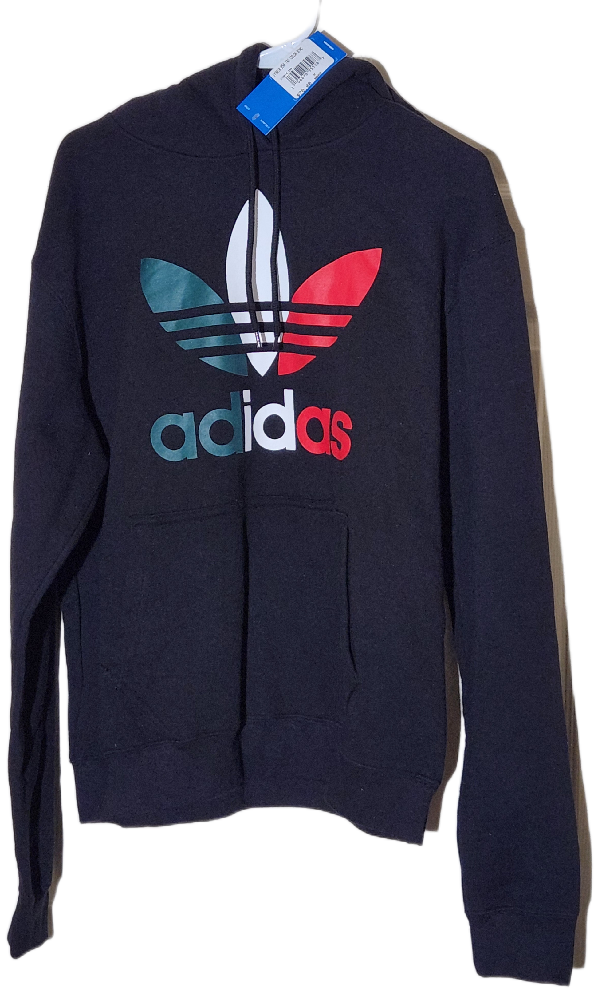 The Adidas Hoodie Tri Color Stac in size Medium is a stylish pullover hoodie designed for men. Featuring a colorful tri-color design with the Adidas logo, this black hoodie is a versatile piece of active-wear perfect for casual or athletic occasions. Made in a regular fit, this hoodie offers both comfort and style, making it a great addition to any wardrobe.