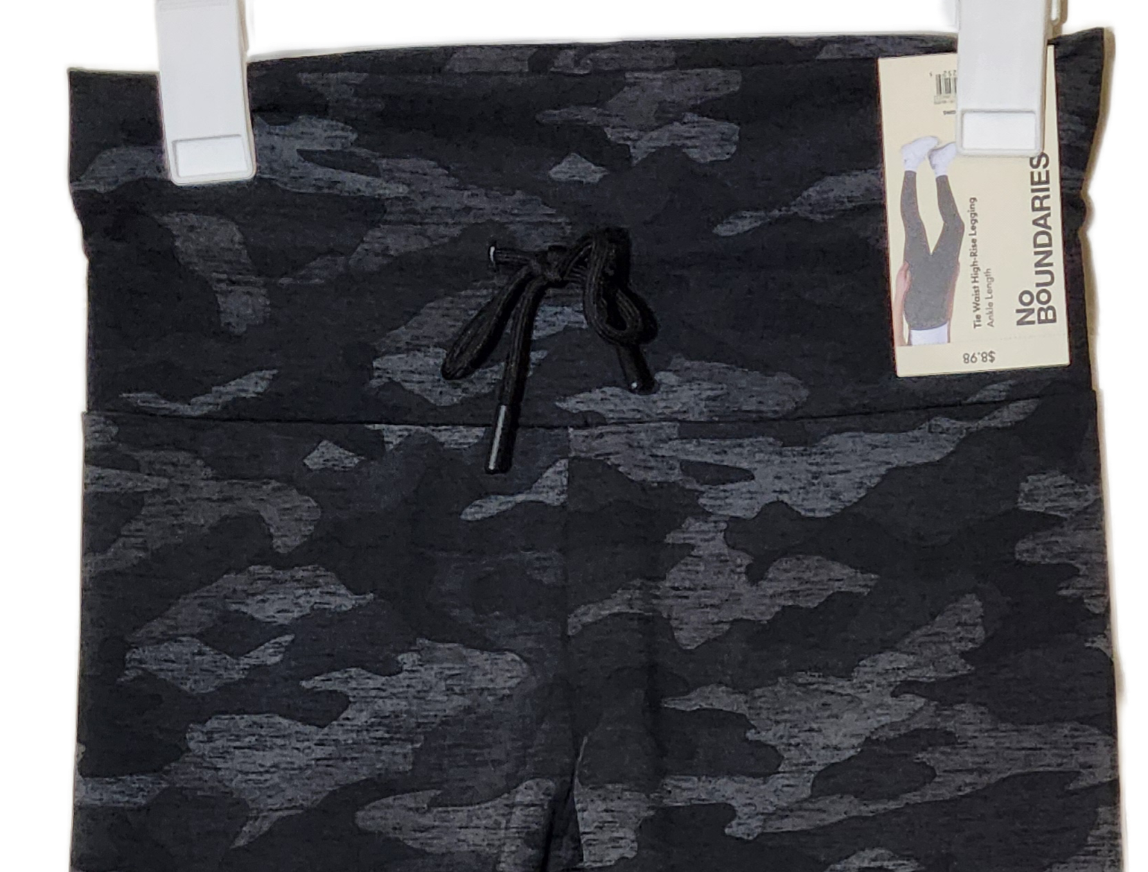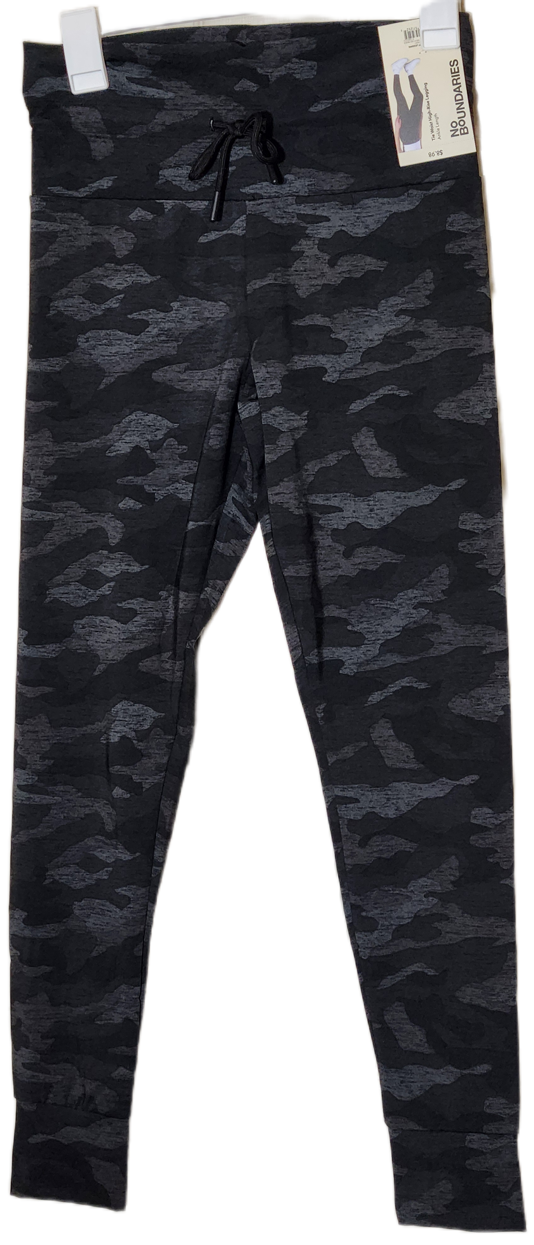 No Boundaries Camo Black Gray Tie Waist High Rise Leggings size Women's S/M